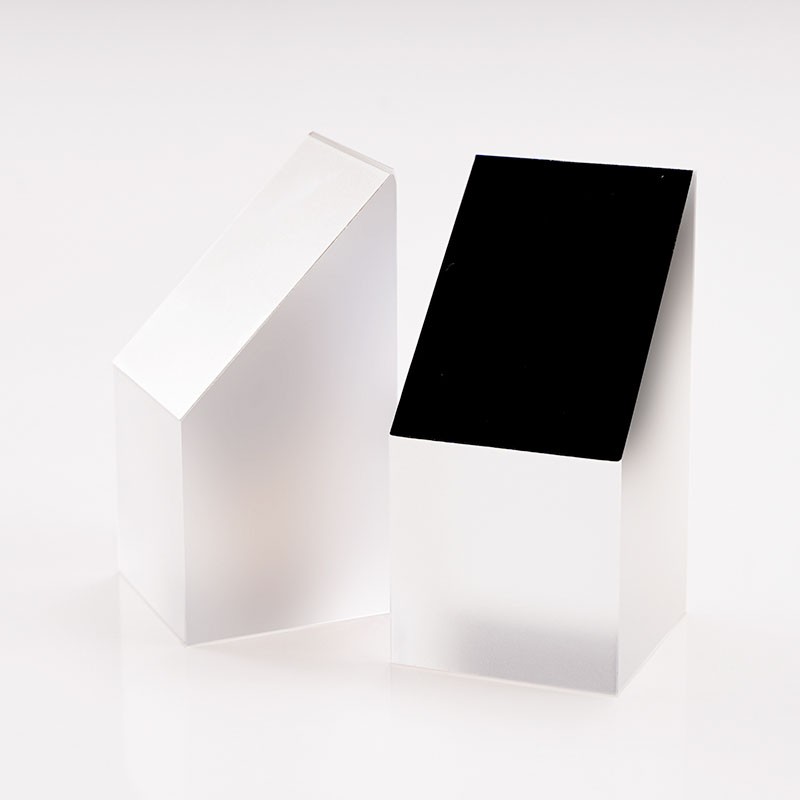 半五角棱鏡是一種特殊的光學元件,它的結構特點是由五棱鏡對切而成,是光束定角度(通常為45°)轉向器件。半五角棱鏡具有許多優點,在應用中,半五角棱鏡常被用于望遠鏡等系統中,使光束實現固定的45°轉折。半五角棱鏡的反射面通常鍍有鋁膜,并加以黑漆保護,而其入射面和出射面則鍍有MgF2(氟化鎂)增透膜,以增強其光學性能。